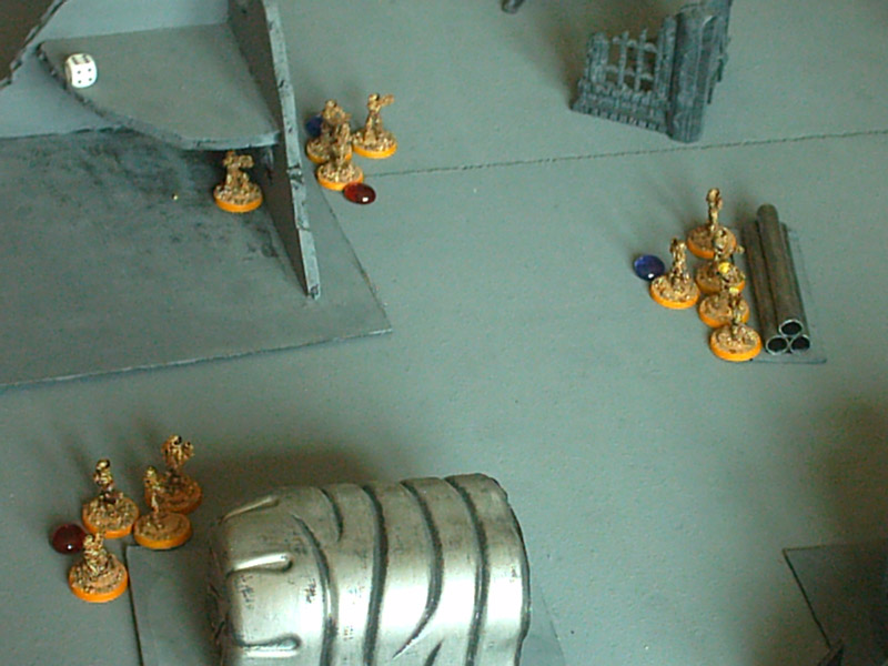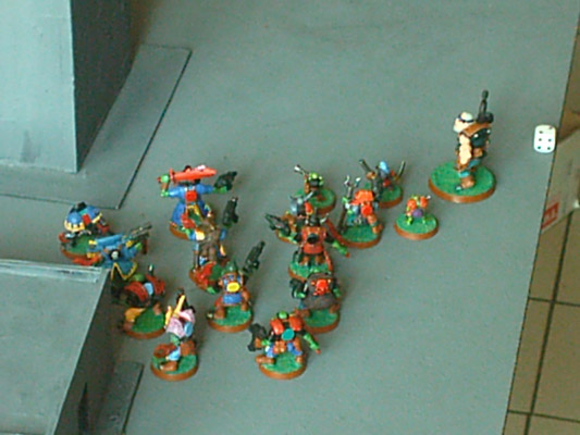 Third Day Report The last day of the Iron Dream Tournament saw the final & decisive confrontation of a mob of Ork Freebooterz, Neu Swabian League Mercenaries and the usual evil Neo-Soviets. For this "minor game", the objective was to pee on überdiktator Zugrub Oomifrind's statue, every turn fully spent in base contact with it allowing the figures to release their urine. The human mercenaries, commissioned by some malevolent power, took the best position on the battlefield and took a heavy toll on the Ork freebooterz. A combined action was tacitly undertaken by both the greenskins and the Neo-sovs to eliminate their presence, and they were soon wiped out of the table top. Ork Nob Gzav Norton and both Neo-Soviet officers then rushed their troops towards the objective, which led to a disgusting carnage of blood and urine, of which the communist scum emerged victorious, 4 litres of radioactive, party-approved piss being spilt on the statue. With this last game over, the ranks were the following: