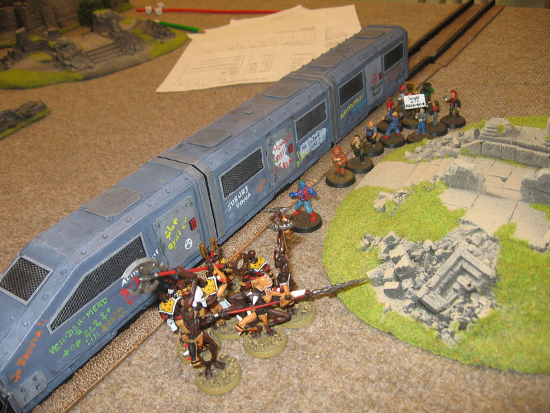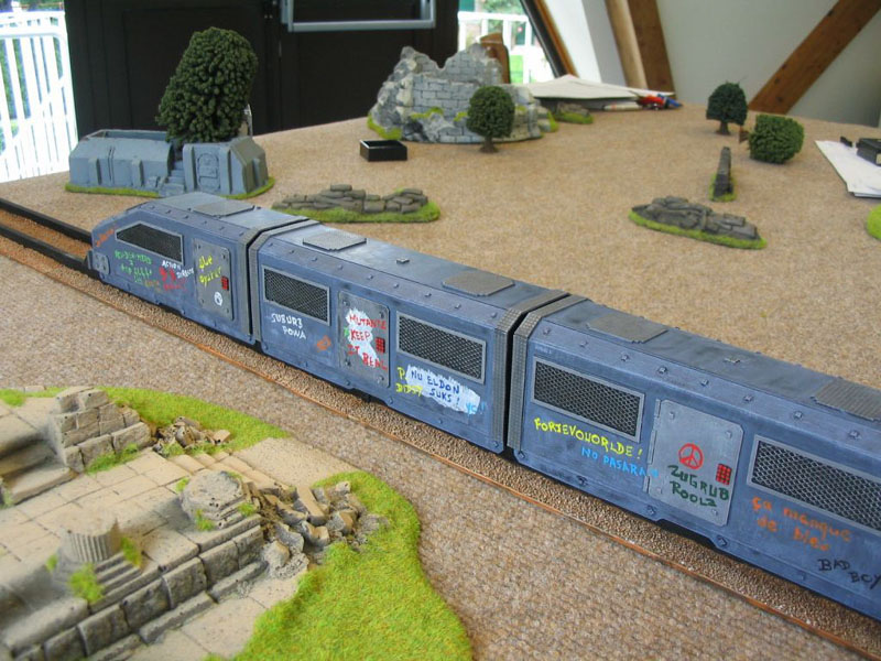 Negromundheim, an apparently uninteresting planet perpetually torn by war, was named after a dark and very rare metal called Negromnium which can be found in large quantities in the planet’s soil. Negromnium is notably used in the construction of faster than light space ships, or as an exceptionally valuable source of energy ; as such, it naturally used to be largely exploited by the Empire before the Great Cataclysm. As the meteor crashed deep into the planet, it contacted the underground layers of Negromnium in its mantle ; the violence of the crash and the extreme heat of the meteor caused a nuclear-chemical reaction and the release of a highly toxic mutagenic gas: Negrotonane. The Negrotonane surfaced through the mining galleries and first contaminated the miners, then a large part of the population as it was spread into the atmosphere, turning them into hideously deformed creatures of subhuman shape and intelligence, also known as the hydrocephalic zombies going "agnagneu la cébéééé" now federated by the infamous Veh Deh Merd – the capital of evil. Busy recreating a society and fighting for survival in a world of savagery and barbarity for more than two centuries, the denizens of Negromundheim had nearly forgotten the existence of the metal that had brought them prosperity... and doom. And then, the sinister ghost of Negromnium reappeared. A new challenge came up for the nations of Negromundheim as a mine of Negromnium was accidentally rediscovered by a Star & Moon expedition seeking for page 666 of the Negronomicon in the South Eastern terra incognita. The time came for the Empire and the various interstellar companies on Negromundheim to get the benefit of their settlement on those cursed lands, and for the local nations to reach a higher step in their development. Unfortunately, it was also the occasion for the foul-smelling abominations of Veh-deh-merd to get the raw material necessary to their ultimate purpose: the development of a Negrotonane production facility and the irreversible corruption of all True Mankind on the face of Negromundheim. From all over Negromundheim, armies were once again on their way – whoever would lay their hands on the mine of Negromnium, another ecological disaster was bound to happen. Only the New Heldon-headed "New Dawn League" and a bunch of ecologist rebels led by a weirdo known as "Captain Negromundheim" seemed aware of the great danger ahead and were willing to oppose the Negromnium rush. Seeking the mine in a long forgotten region, the competing forces struggled for every piece of information they could get and every track that might lead them to their goal. The Squats were able to collect information from a downed aircraft pilot, and confront it with those the chief of a local primitive tribe gave them, and soon got to the mine. ![]() ![]() Only to discover that the NeoSoviet Politburo intelligence had preceded them ! Duchesse, who had been plotting Kommander Grigor Ontsatiev’s demise for long, used the so-called genetic instability of his army of clone troopers as a last minute excuse to do a political purge and get all the benefit of his search. Stabbed in the back by his own camp, Grigor was the only one to survive the Politburo’s trap. Using her belt to hold together her skull split by Grigor’s Big Jo MkII pistol, Duchesse emerged victorious but didn’t have enough time to set another trap for the squats. ![]() While Rednecks and Wurstlanders were still trying to get rid of the Ghosts of Negromundheim defending the mine’s entrance, furious gunfights took place in mine’s galleries. ![]() ![]() It was eventually the Squats who took control of the mine, and loaded the precious Negromnium cargo on board of the Veh Deh Merd Express, an entirely automated super-high-speed train, sustained and protected by a powerful electromagneticomagic field designed centuries ago to convoy negromnium ore from the southern deserts to the northern cities. ![]() Unfortunately for them, a rampaging Zookoo mob managed to hijack the train and flee with its precious cargo. ![]() As the mutant primitives were riding back to their radioactive jungle, something unexpected happened. The Veh Deh Merd Express stopped suddenly a few minutes after it started, and after some investigation, it appeared its main power source was out. Unfortunately for the Zookoo survivors, their pursuers hadn't given up – now, an ultimate confrontation was unavoidable. ![]() Just as if the heavy casualties incurred within the ranks of the six forces weren’t enough, Semi-Demon-God Totzupaqatl emerged from the command centre to defend its territory. ![]() Thanks to the unexpected intervention of the eerie Ghost of Nature, who appeared to prevent the forces of Negromundheim from causing another ecological disaster, Zookoo WarChief Bulu-bulu managed to get rid of the mutant freak and the remaining opposition, start the train again, and take the Negromnium cargo to the Zookoo jungle where it would be buried under the benevolent protection of the Great Totemic Banana. ![]() ![]() Sure, the Squats were the undisputed masters of the Negromnium mine. But the first cargo they extracted was lost, and it soon became very unlikely that there would be another one, as their greed not only endangered them, but the whole planet – if not the universe ! ![]() As private Bob Regis opened the door to Hell itself, its rampaging abominations spread across the land, dealing death and desolation. As long as the door to Hell remains open, the evil they had unleashed would be growing more powerful. The Iron Dream is broken. Now, for the peoples of Negromundheim, it’s not about power, domination or wealth anymore. It’s about survival. As hell is slowly engulfing their world, the battle they now have to fight could well be the last one. Only if they can pass this ultimate trial, they will be able to reach once again the Iron Dream. Make it true. Live it. And prove TOO TOUGH FOR HELL TO CON
