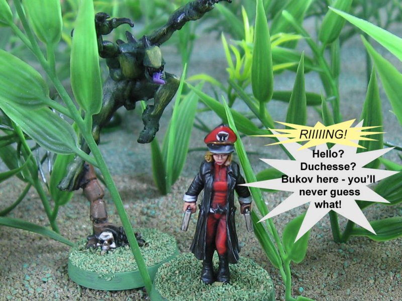 The situation seemed unmanageable until the Doom Space Marines joined in the fray. Those Imperial elite shock troops were the first not only to stop the demonic tide, but to get to the mine's entrance. ![]() After fighting their way through endless hordes of demonic minions to the pit that led to the door to hell, they had to face another unfortunate reality: there was no way to close the door again – AT LEAST, NOT FROM THIS SIDE. Gothic Hell was to be locked from the inside. For the first time in history, all commandoes then joined forces (if only temporarily) and stepped into Gothic Hell itself to find a way to lock the door to Hell from the inside. Many Scrunts were slaughtered in vain at the Wheel of Doom, the dimensional device that kept the door open. The NeoSoviets were hardly more successful. Youri, the first acknowledged child of Negromnium did become a proletarian hero by slaying Baron J.Kaar'Mak by the Hammer and Sickle, but this time the situation was so desperate that even Kommander Ontsatiev preferred calling back his troops. ![]() ![]() Meanwhile, the New Helders made an unexpected discovery – in the darkest corridors of Hell, they found... Sarah and Julianah Jones. The two archeologists were killed two years ago at IDT3 in the middle of a gunfight between the forces of Shub Niggurath and of the Neosoviet Politburo. Though their last action was to save the world by tearing apart page 666 of the Negronomicon, they were nonetheless sentenced to hell because of unforgivably dubious actions during their youth (allegedly drug addiction and other mischiefs best left untold.) ![]() During those two years, the intrepid sisters did not waste their time : thanks to the map of Hell drawn by Sandro Boticelli and Dante Allighieri's descriptions, they soon managed to find a way out : there was a dimensional teleport hidden under Jakar Nilson's throne. The arrival of the armies of mortals in hell brought them the back up they needed until now to take their chance. Meanwhile, on Negromundheim, every government's attention was shifting towards the southern radioactive jungle, where teams of adventurers had been sent to seek for the Diamond Pistachio - reportedly the magic key that could still close the door to hell from the outside. ![]() The jungle was infested with dangerous and unexpected creatures, and the competition between parties was fierce. The Crocodile-King, master of the jungle and legendary hitter of the Negromundheim Yankees himself entered the game to defend his property against the thieving strangers who had hired his old rival Martine, head-hitter of the Golgomundheim Clippers, to defeat him. ![]() After facing a thousand perils, it is finally a group of ruthless and greedy mercenaries who got hold of the precious gem - only to discover that is was just a piece of shiny rubber marked "made in Veh deh merd". The dimensional gate was still open and wouldn't be closed. Negromundheim was doomed. Unaware of that devastating news, a bunch of exhausted survivors were facing CyberArchduke Jakar Nilson in a desperate attempt to escape Gothic Hell via the portal under his throne. The cream of the Imperial Shock Troops eventually managed the unthinkable: they knocked Jakar Nilson out and escaped Gothic Hell, leaving the remains of the other forces behind them. ![]() A couple hours later, a red mobile phone rang in the radioactive jungle. - "Duchesse? We have a problem. It looks like you're not going on holiday anytime soon. At first, we thought of calling it a draw in the Imperial fashion, but that won't do: Hell's really taking over the planet. What do you say? - I say we take off and nuke the entire site from orbit - it's the only way to be sure." ![]() Everywhere on the planet, similar conclusions were made. Emergency evacuation and battle plans were discussed around bottles of Gros Plant du Pays Nantais. Space was the only way out – and already, it was pretty obvious that there wouldn’t be room for everyone. It was still early to know whether any possible survivors from the expeditions in hell would manage to run their way back home from wherethey got in – one thing was sure, though: they’d better hurry if they want to catch the next spacecraft. Live another Iron Dream. Make it true. And take part in the