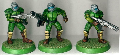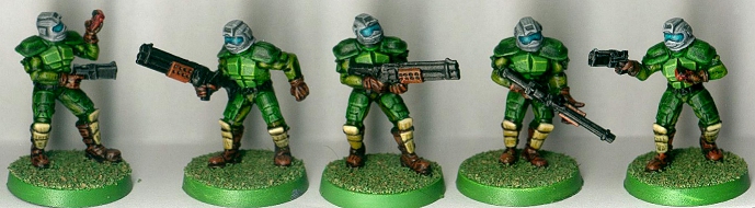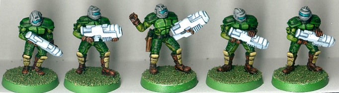 (Figures are Void syntha prosthene marines (now OOP?), with Denizen miniatures Federation helmets and various bits.)