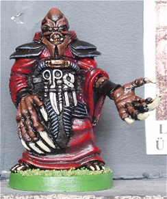 A former officer in the Star & Moon armed forces, Colonel Warzaza was turned into a totenkopf radioactive mummy in 205 after the meteor. As he was leading the search of the Desert Dogs base, with which all communications had been lost for weeks, he found the cause of all the trouble. As he carelessly laid his hands on the Negronomicon, a demonic servant of Shub-Niggurath consumed his soul and possessed his body. Obeying his demonic host, Colonel Warzaza then gathered worldly and undead forces to keep the Negronomicon and further the awakening of the Niggurii civilisation.