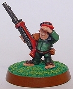 A former sniper in the Imperial Guard, ratling Paolo Potbelly followed Leana Leggy and Jim Doomy, becoming the third member of the Fantastic Four. Coarse, boastful and obsessed with lust and food, he is nonetheless a formidably efficient sniper and an expert in the use of all kind of ranged weapons.
