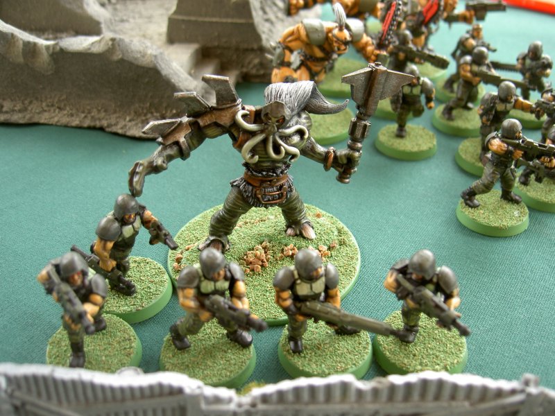 Grunts by GW; Ogres by Heresy Miniatures. Spawn of Shub Niggurath by RAFM. Quake-style Shamblers could be represented by Yetis or VOR Whitetusk bulls, and Fiends by GW Genestealers. Special