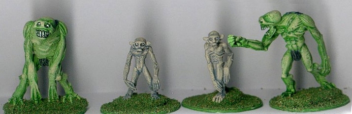 Most mutant mobs, whatever their appearance (parrot faces, blue-skins, toadmen, gnomes, one-eyes, skaviets), are basically as efficient as poor human troops, with low morale, and little or no military training and experience. Some particular varieties, however, have physical and cultural specificities: skaviets are fast and cowardly ; gnomes are tough ; grots and ratlings are weak… It is very difficult to classify mutants properly, as there are so many types out there, and they’re always likely to evolve. |